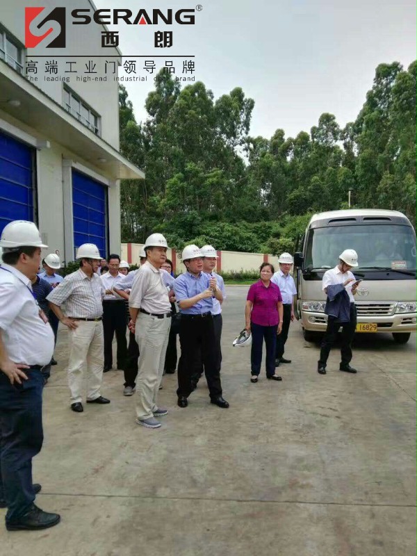 领导们在SERANG成人向日葵视频下载安装工业快速堆积门、拉链式快速门前考察项目: